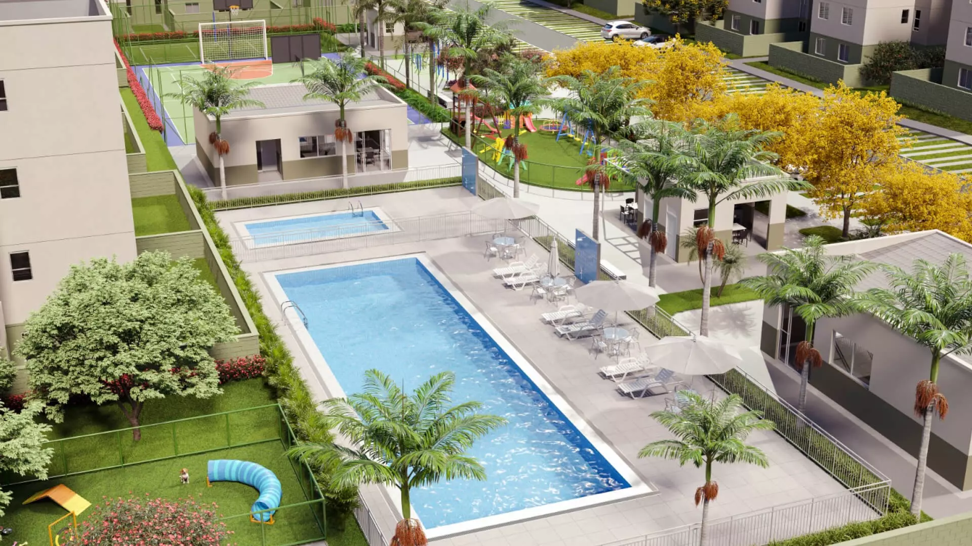 E a história continua agora com o Total Ville Ikeda. Vem aí um bairro completo com toda a qualidade que só a Direcional pode oferecer. Condomínio fechado, com 2 e 3 quartos com suíte e varanda, lazer de clube com piscina, às margens da BR-070.
